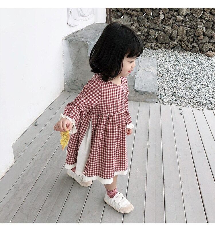 ★送料無料★2カラー 女の子 ギンガムチェック レイヤード風 ワンピース 80cm〜120cm 秋 冬 韓国子供服