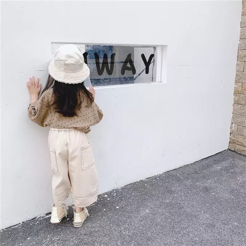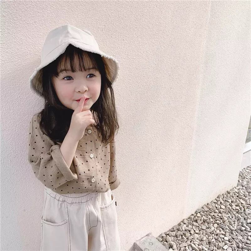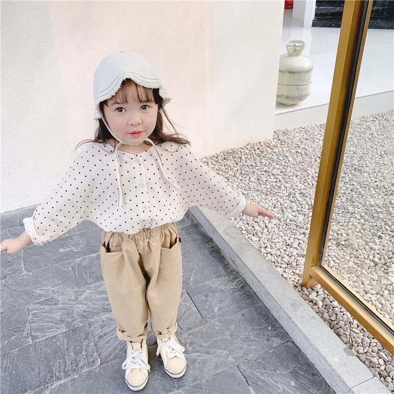 ★送料無料★ 2カラー ホワイト 白 女の子 ノーカラー ドットブラウス 80cm〜130cm 秋 冬 韓国子供服