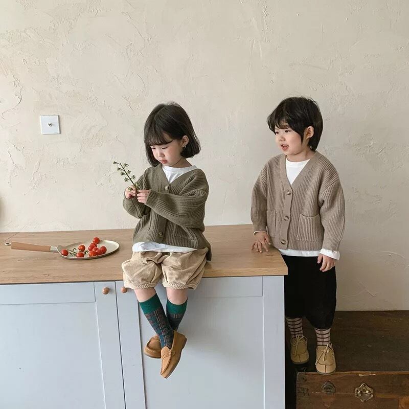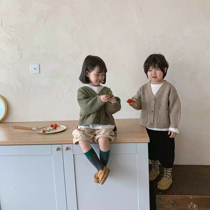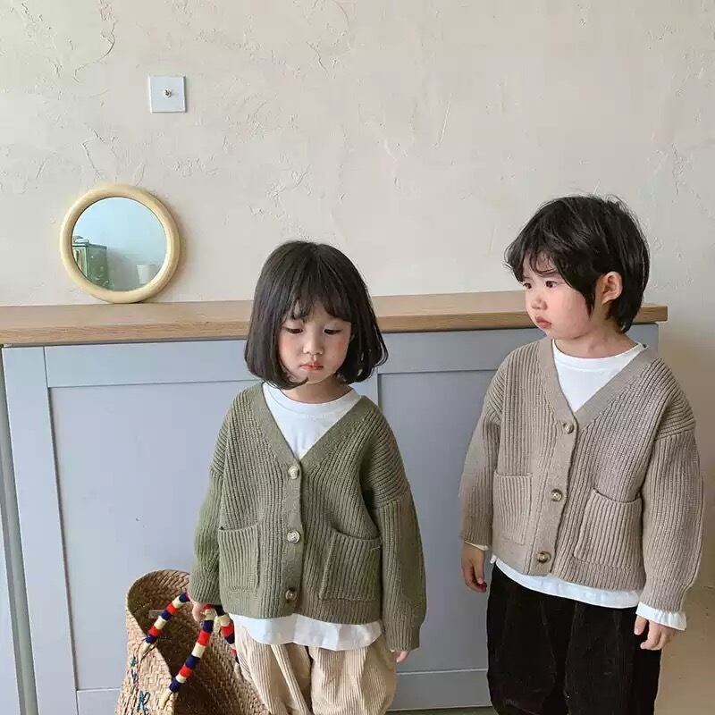 ★送料無料★ 2カラー ベージュ 女の子 男の子 ニットカーディガン 80cm〜130cm 秋 冬 韓国子供服