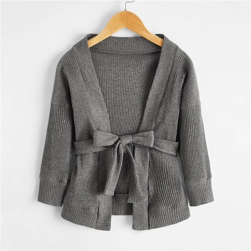 ★送料無料★ 4カラー グレー 女の子 ウエストマークカーディガン 80cm〜130cm 秋 冬 韓国子供服