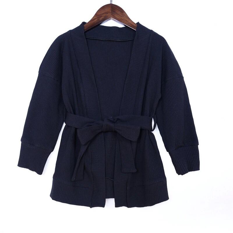 ★送料無料★ 4カラー ブラック 女の子 ウエストマークカーディガン 80cm〜130cm 秋 冬 韓国子供服