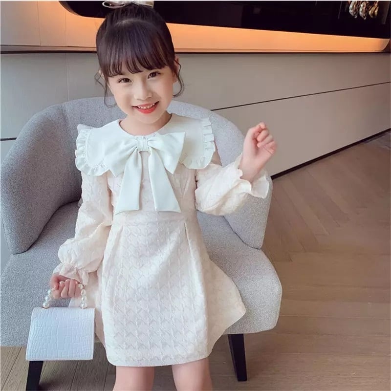 ★送料無料★ 2カラー ホワイト 白 女の子 襟付きリボンワンピース 90cm〜150cm 秋 冬 韓国子供服