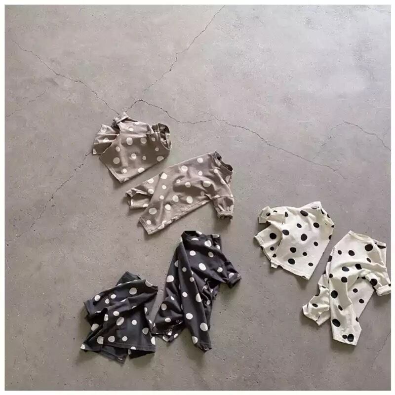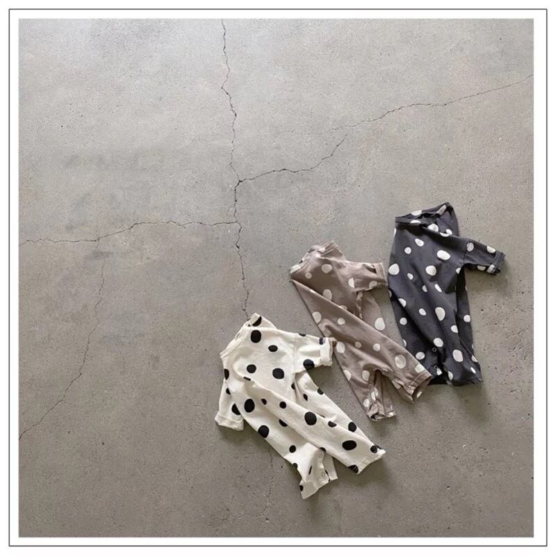 ★送料無料★ 3カラー ブラック 黒 男の子 女の子 ドットロンパース 66cm〜90cm 秋 冬 韓国子供服