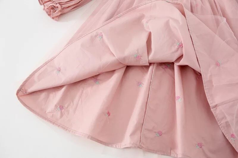 かわいい刺繍のパフスリーブチュールワンピース ♪