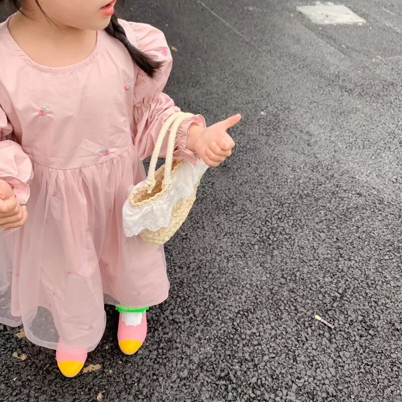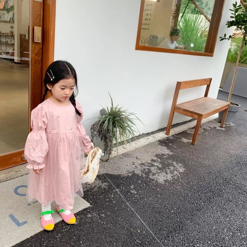 ★送料無料★ 女の子 パフスリーブチュールワンピース 80cm〜130cm 秋 冬 韓国子供服