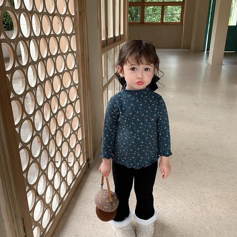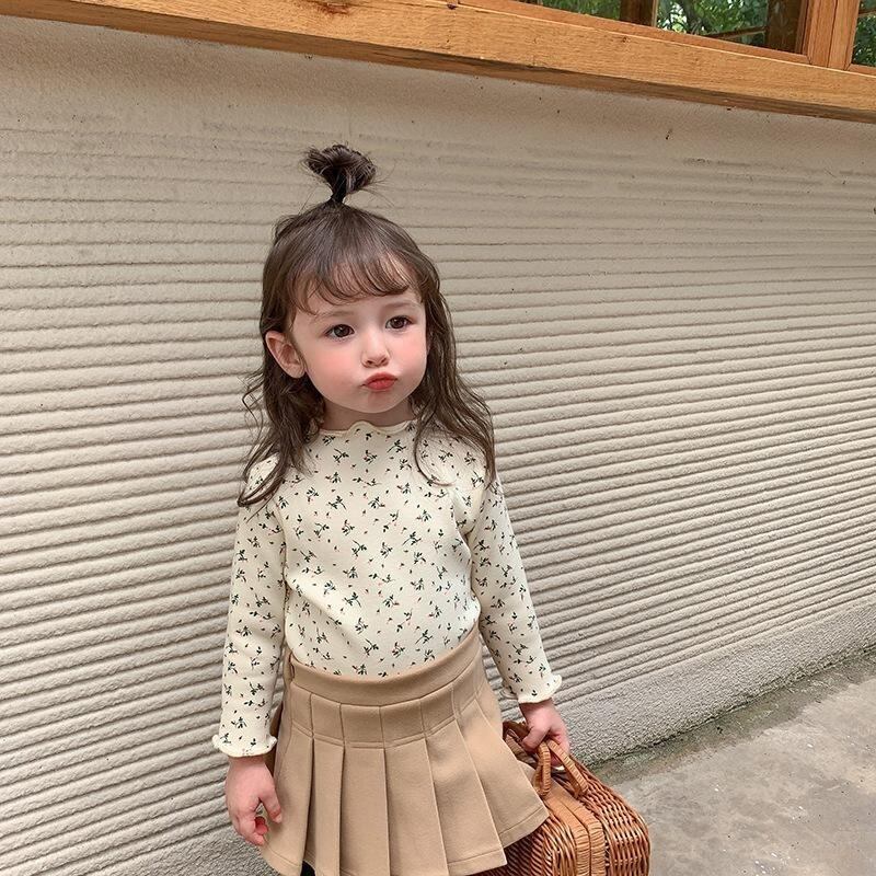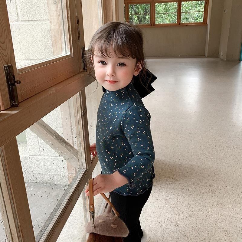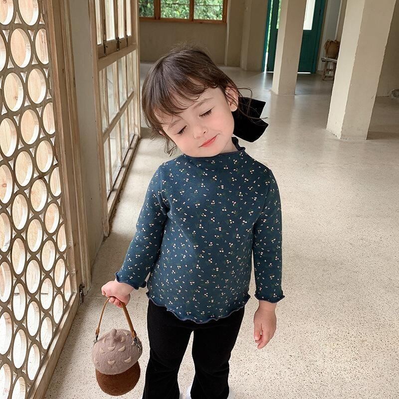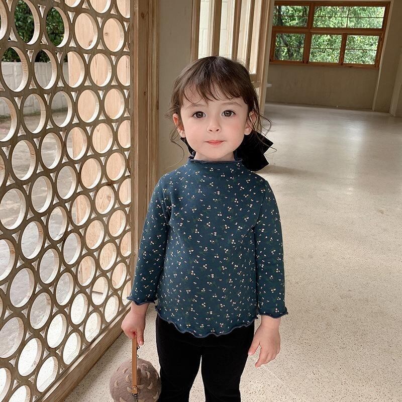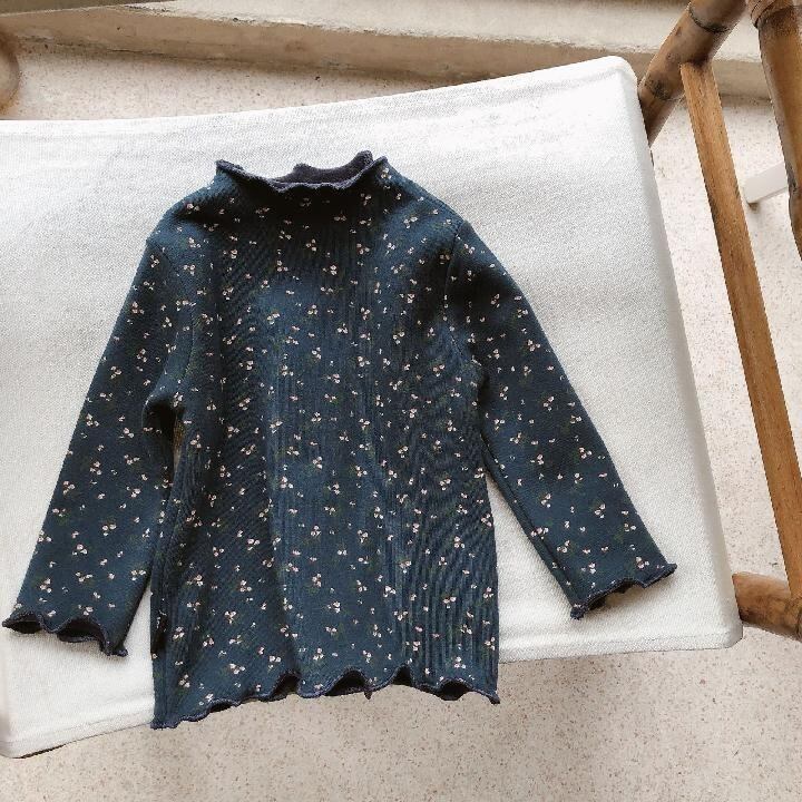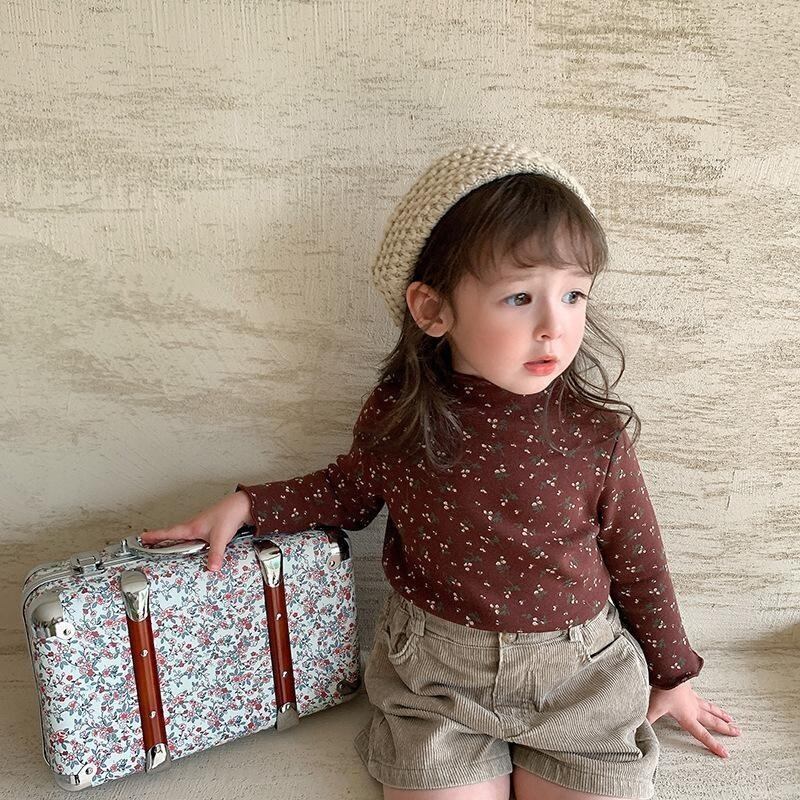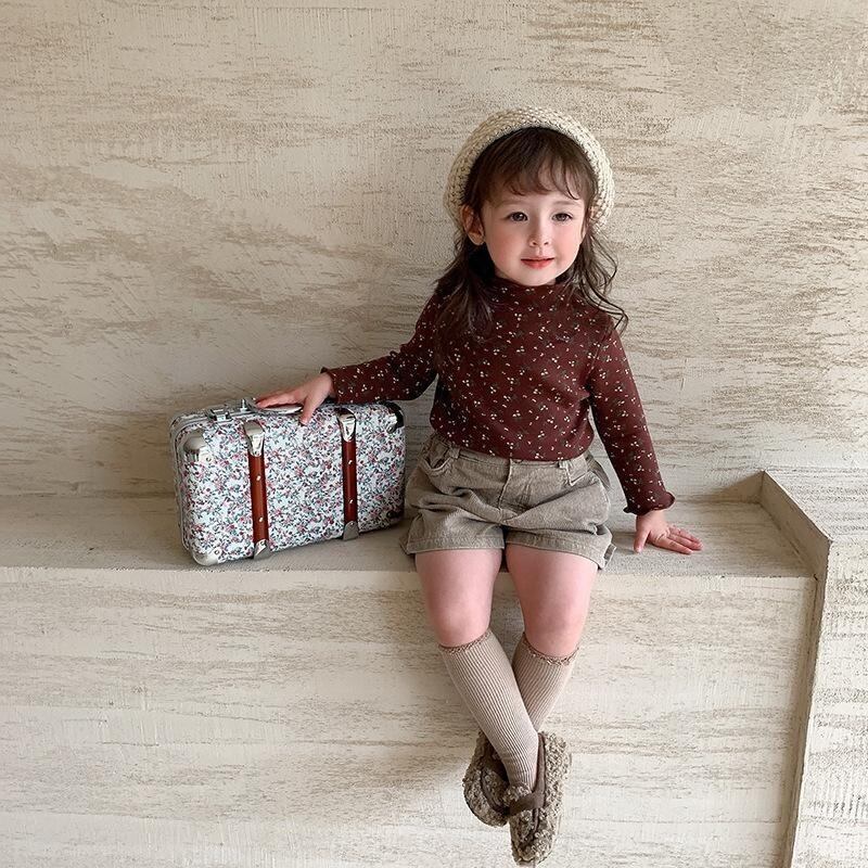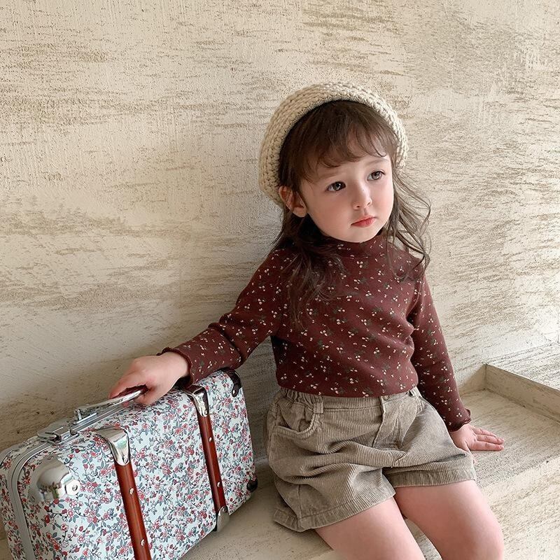 ★送料無料★ 3カラー ホワイトベージュ 女の子 花柄スタンドカラー長袖カットソー 80cm〜130cm 秋 冬 韓国子供服