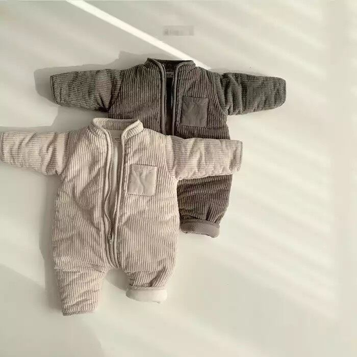 ★送料無料★ 2カラー ベージュ 女の子 男の子 コーデュロイロンパース 66cm〜90cm 韓国子供服