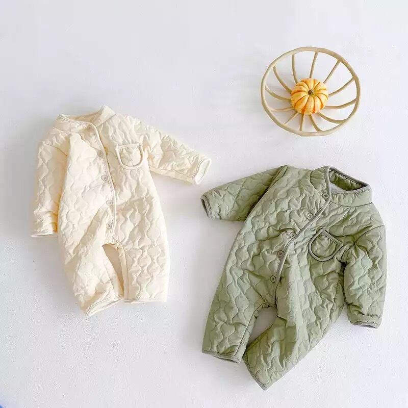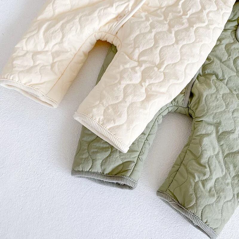 ★送料無料★ 2カラー グリーン 女の子 男の子 裏ボアキルティングロンパース 66cm〜90cm 韓国子供服