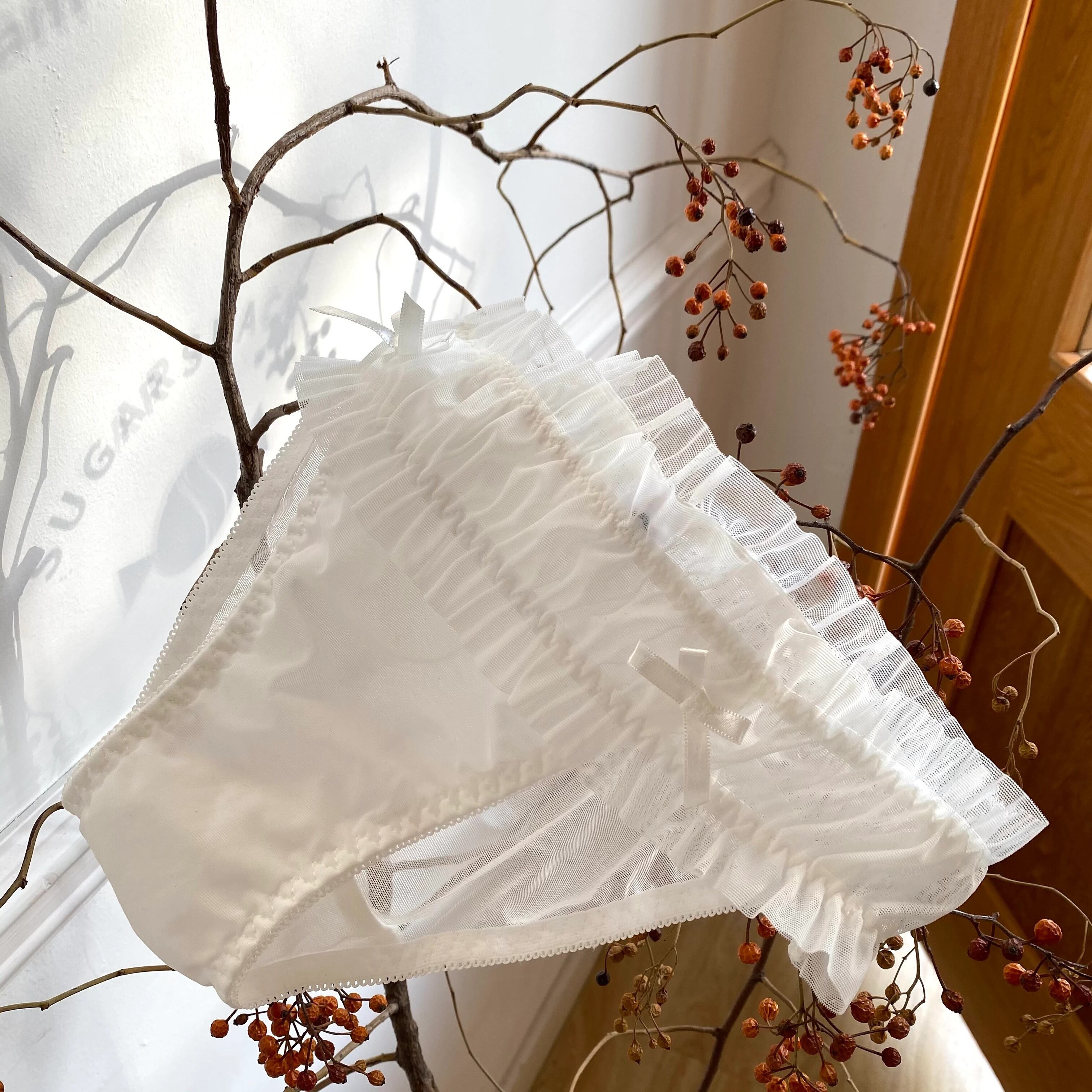 レディース 女性 用 下着 ランジェリー パンティ パンツ ショーツ ブリーフ くすみ カラー パステル シンプル 海外 デザイン 柔らか レース フリル 楽ちん ストレスフリー 体系カバー おしゃれ トレンド かわいい シアー 透け感 メッシュ リボン チュール フリル 白黒 モノトーン