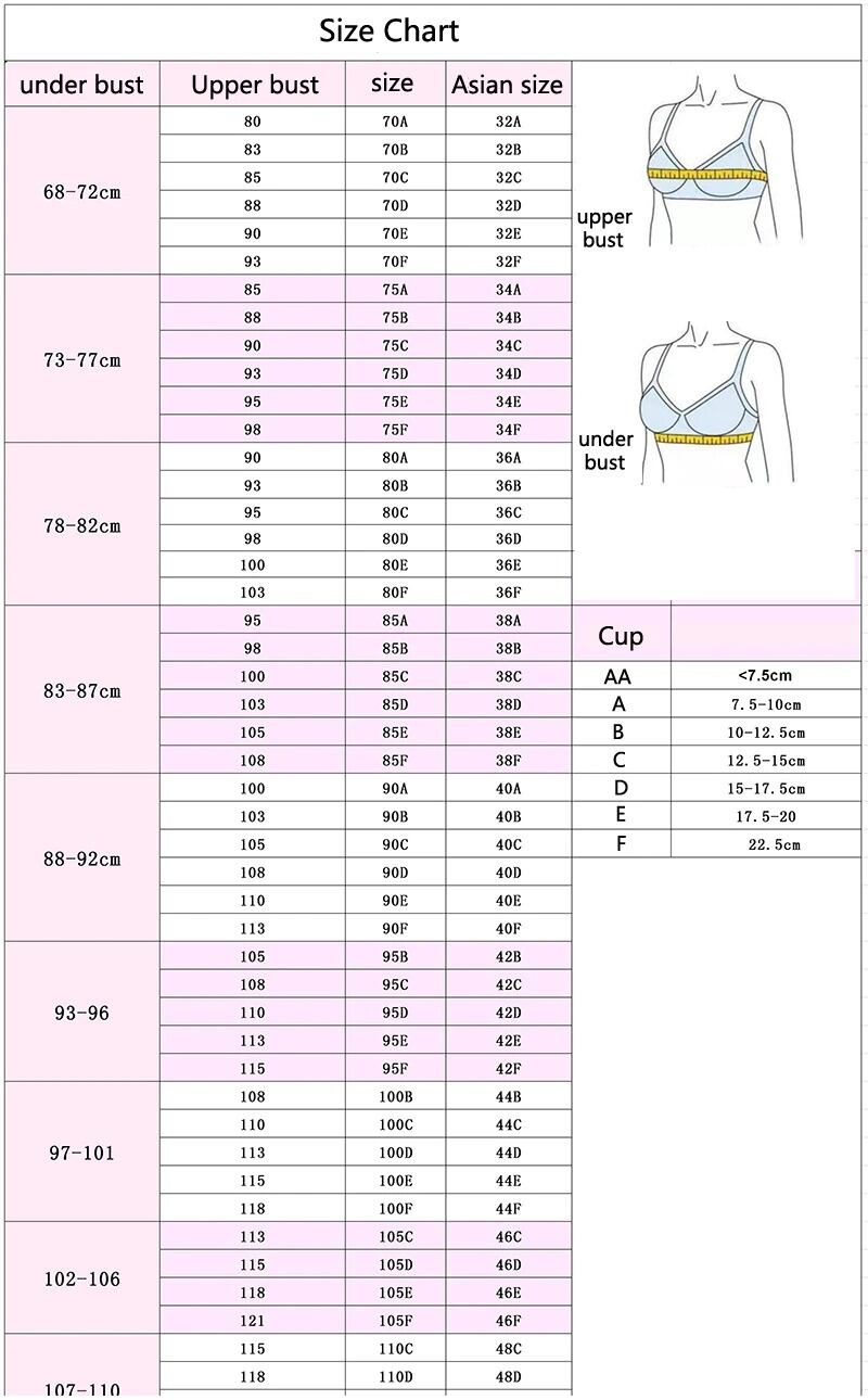サイズ:70A、70B、70C、70D、70E、75A、75B、75C、75D、75E、80A、80B、80C、80D、80E、85B、85C、85D、85E、90C、90D、95C、95D