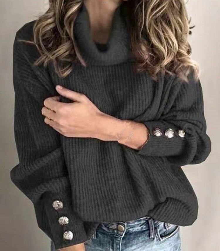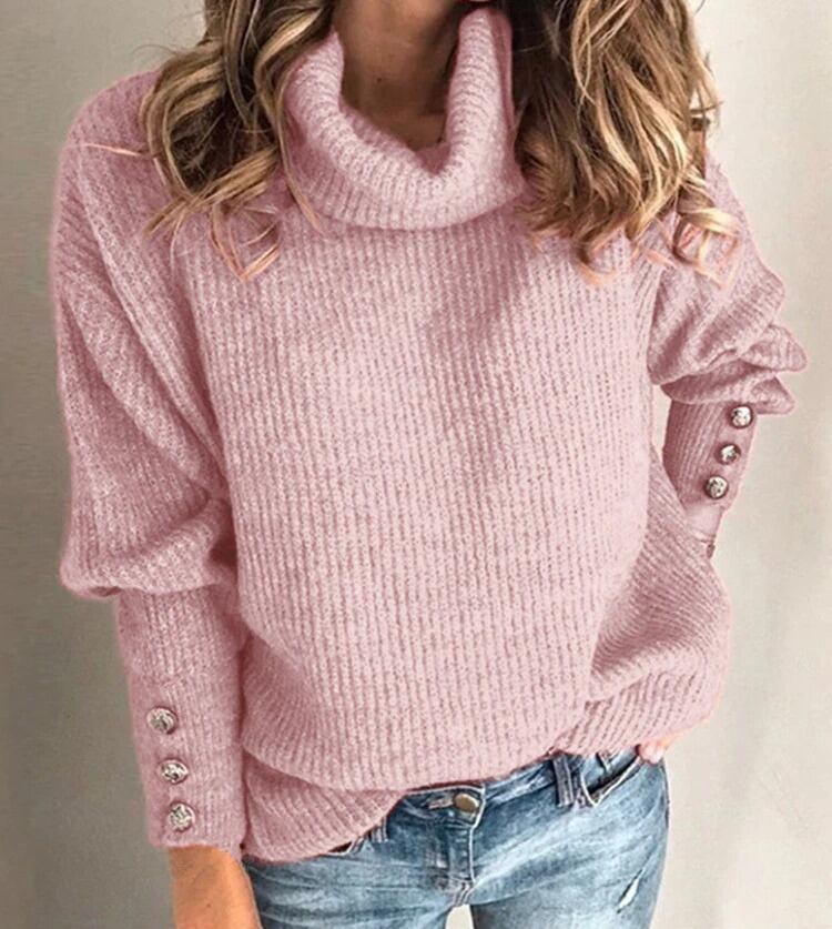 ★送料無料★ 10カラー レディース タートルネックボタンニット 韓国 秋 冬 S〜5XL
