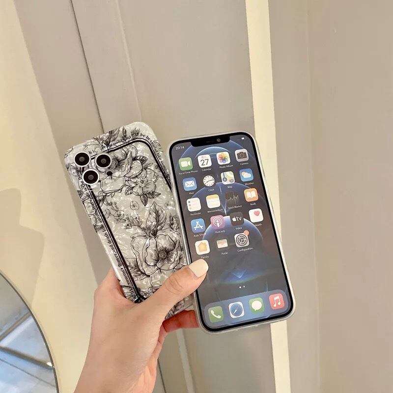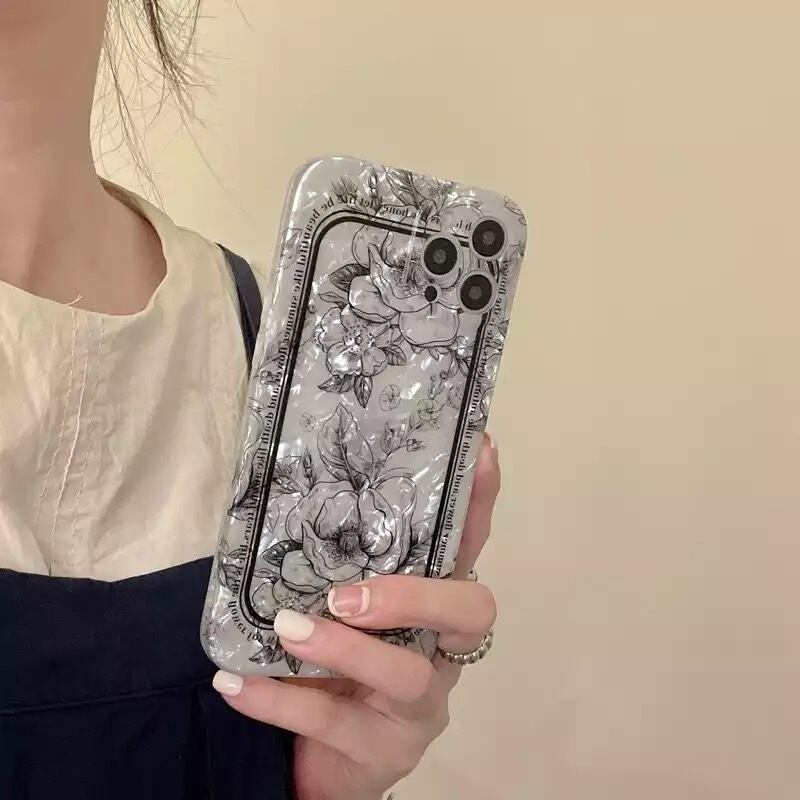 iPhone ケース スマホ アイフォン プチプラ 韓国 中国 海外 おしゃれ かわいい かっこいい 最新 売れてる モノトーン クラシック クラシカル フラワー 花柄 ヴィンテージ ビンテージ 貝 シェル