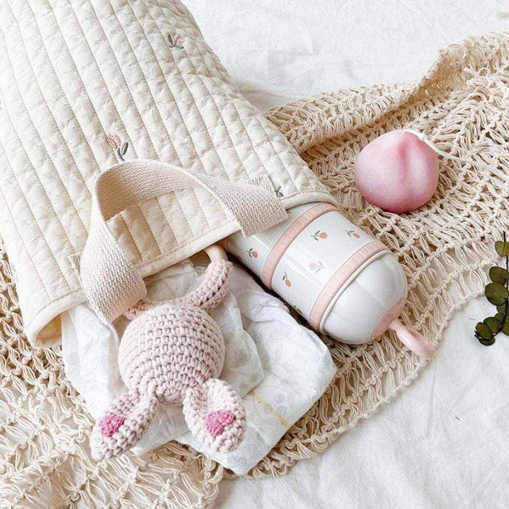 マザーズ バック バッグ オムツ おむつ 哺乳瓶 ミルク お着替え ベビーカー 靴 シューズ スニーカー 離乳食 子供 子ども こども 用品 トート ボストン 大容量 ナチュラル キルティング 柄 模様 バケツ 型 チューリップ