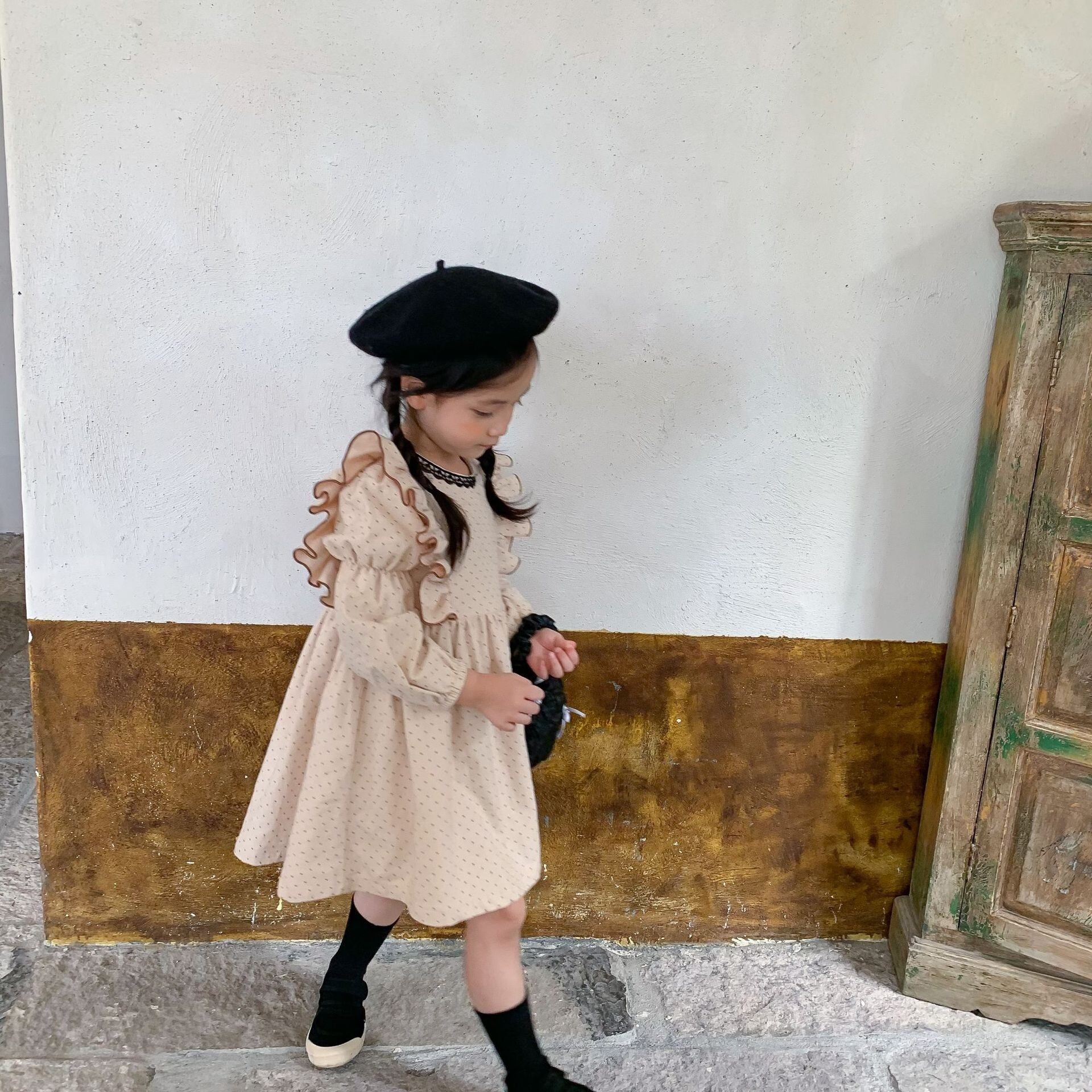 ★送料無料★ 女の子 ドットフリルワンピース 80cm〜130cm 秋 冬 韓国子供服