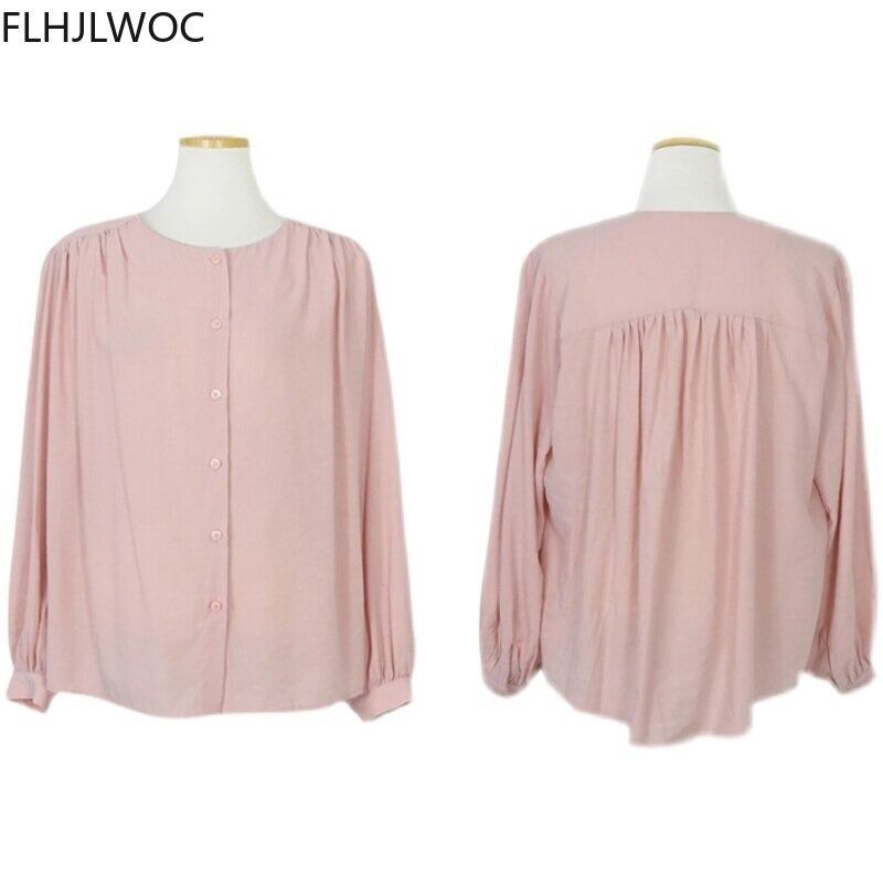 レディース 女性 用 女 ブラウス くすみカラー アースカラー 長袖 ブラウス シャツ トップス カットソー ラウンドネック Uネック カジュアル オフィス ナチュラル エレガント ギャザー しわ シワ