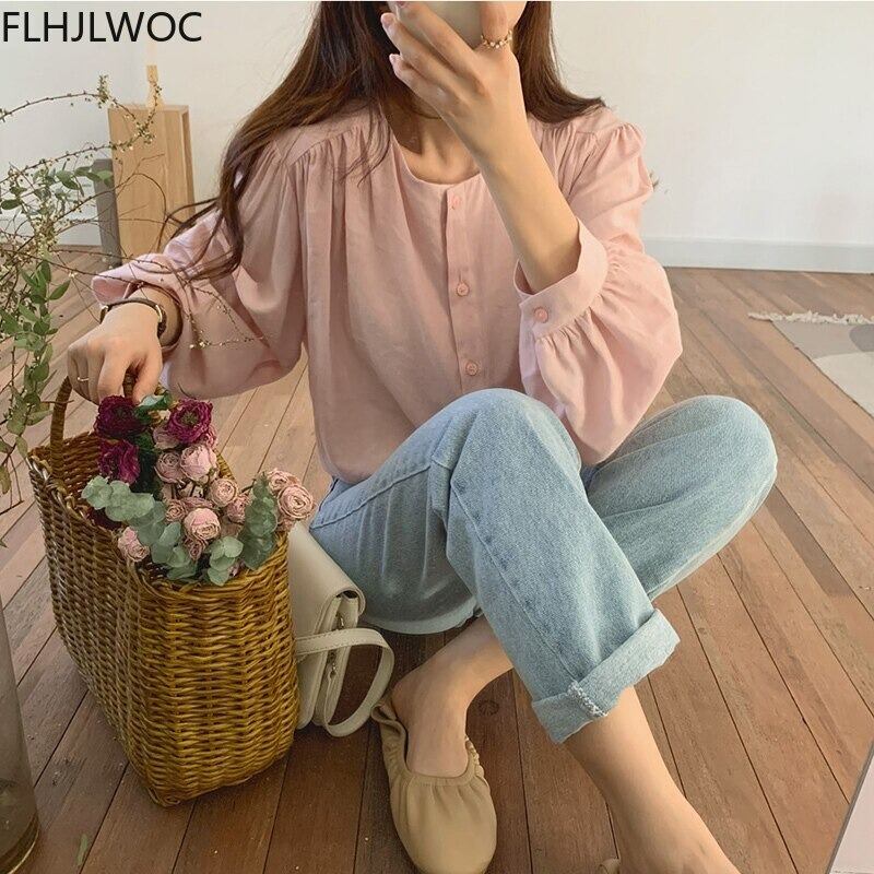 ★送料無料★ 2カラー ホワイト 白 レディース 長袖 ギャザーブラウス 秋 冬 韓国