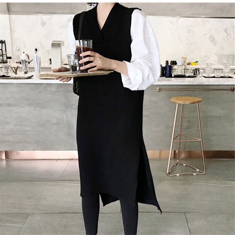 レディース 女性 用 韓国 海外 プチプラ 服 おしゃれ かわいい かっこいい カラー コーデ きれいめ きれい目 上品 ニット セーター ロング ノースリーブ ベスト スリット モノトーン