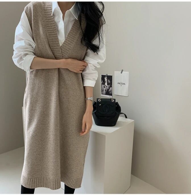 レディース 女性 用 韓国 海外 プチプラ 服 おしゃれ かわいい かっこいい カラー コーデ きれいめ きれい目 上品 ニット セーター ロング ノースリーブ ベスト スリット モノトーン