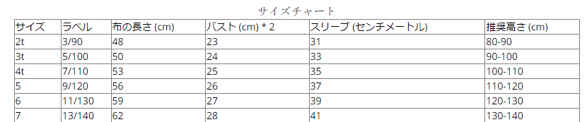 サイズ:90、100、110、120、130、140cm