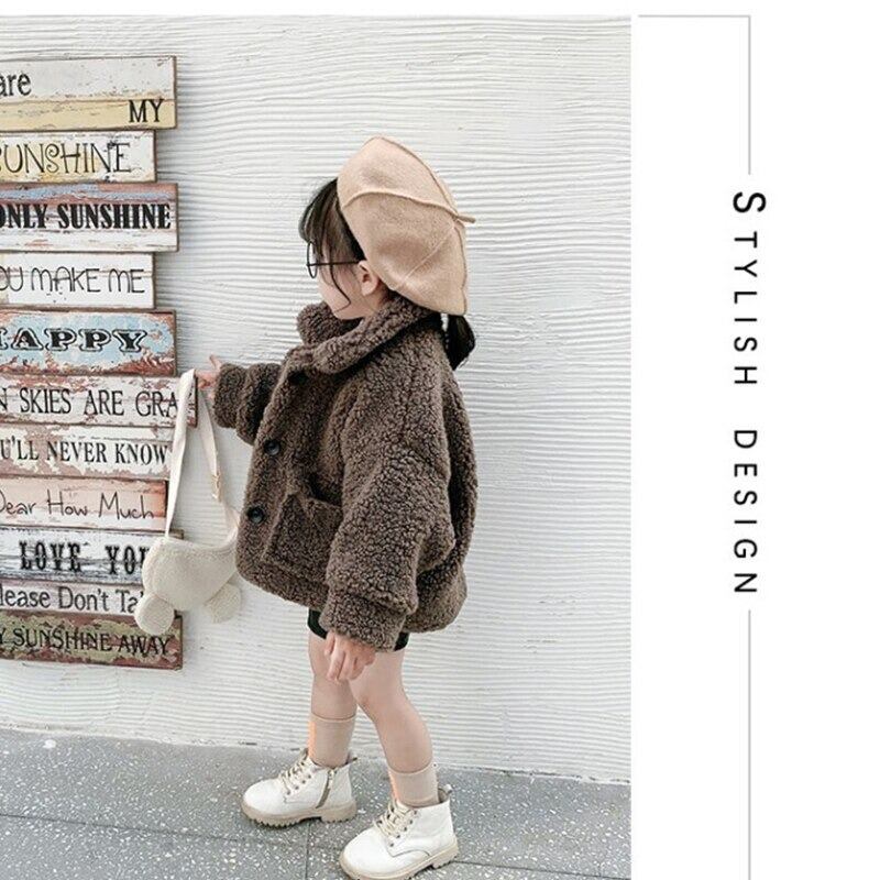 ★送料無料★ 3カラー ピンク 女の子 もこもこシングルコート 80cm〜120cm 秋 冬 韓国子供服