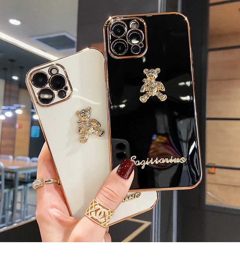 ★送料無料★ 2カラー ホワイト 白 iPhone12対応 ゴールドくまiphoneケース