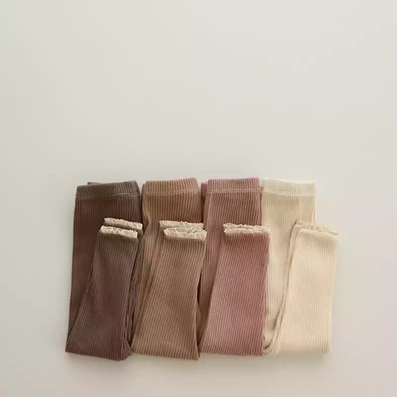 ★送料無料★ 4カラー ① 女の子 裾レースレギンス 66〜90cm 韓国子供服 秋 冬