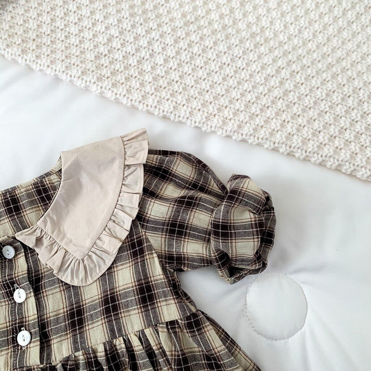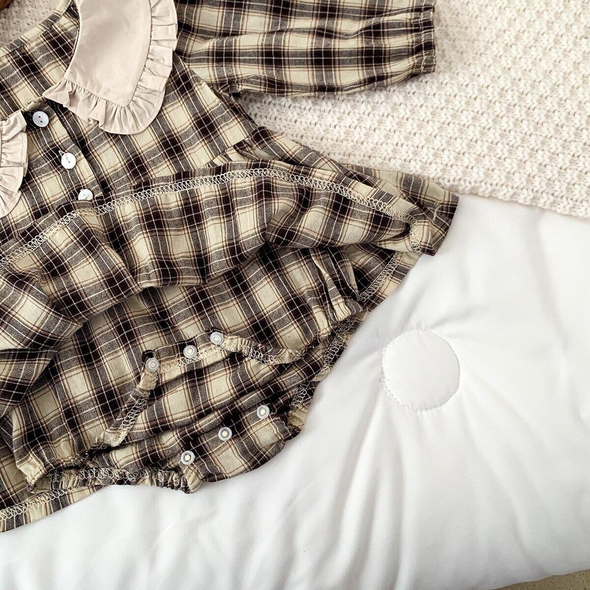 ★送料無料★ 女の子 フリル襟付きチェックロンパース 66cm〜90cm 韓国子供服