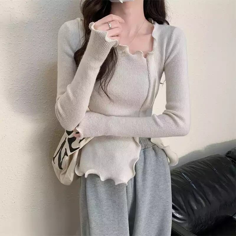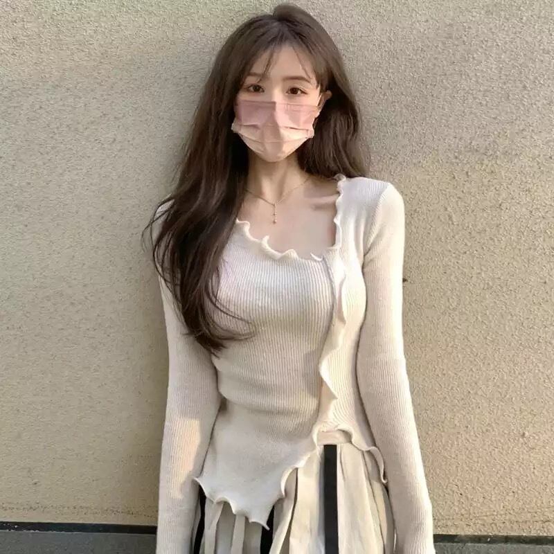 レディース 女性 用 韓国 海外 プチプラ 服 おしゃれ かわいい かっこいい カラー コーデ きれいめ きれい目 上品 ニット セーター アシンメトリー デザイン シルエット カットソー フリル 切りっぱなし 長袖