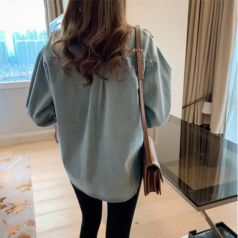 ★送料無料★2カラー レディース 長袖 フリルデニムシャツ 秋 冬 春 夏 韓国