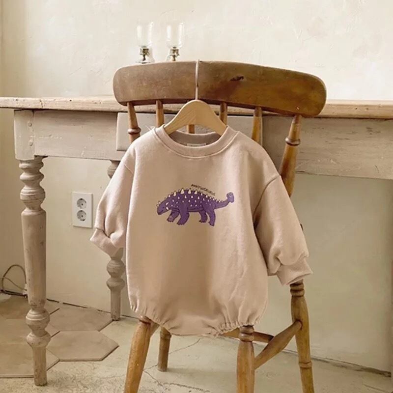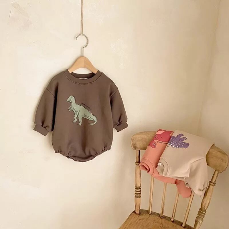 ★送料無料★ 3カラー ブラウン 女の子 男の子 恐竜ロンパース 66cm〜90cm 秋 冬 韓国子供服