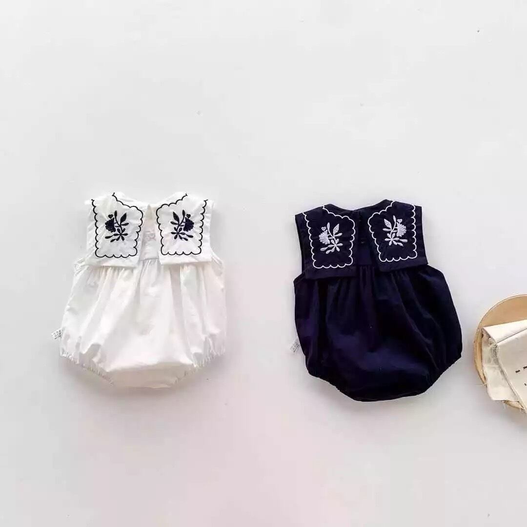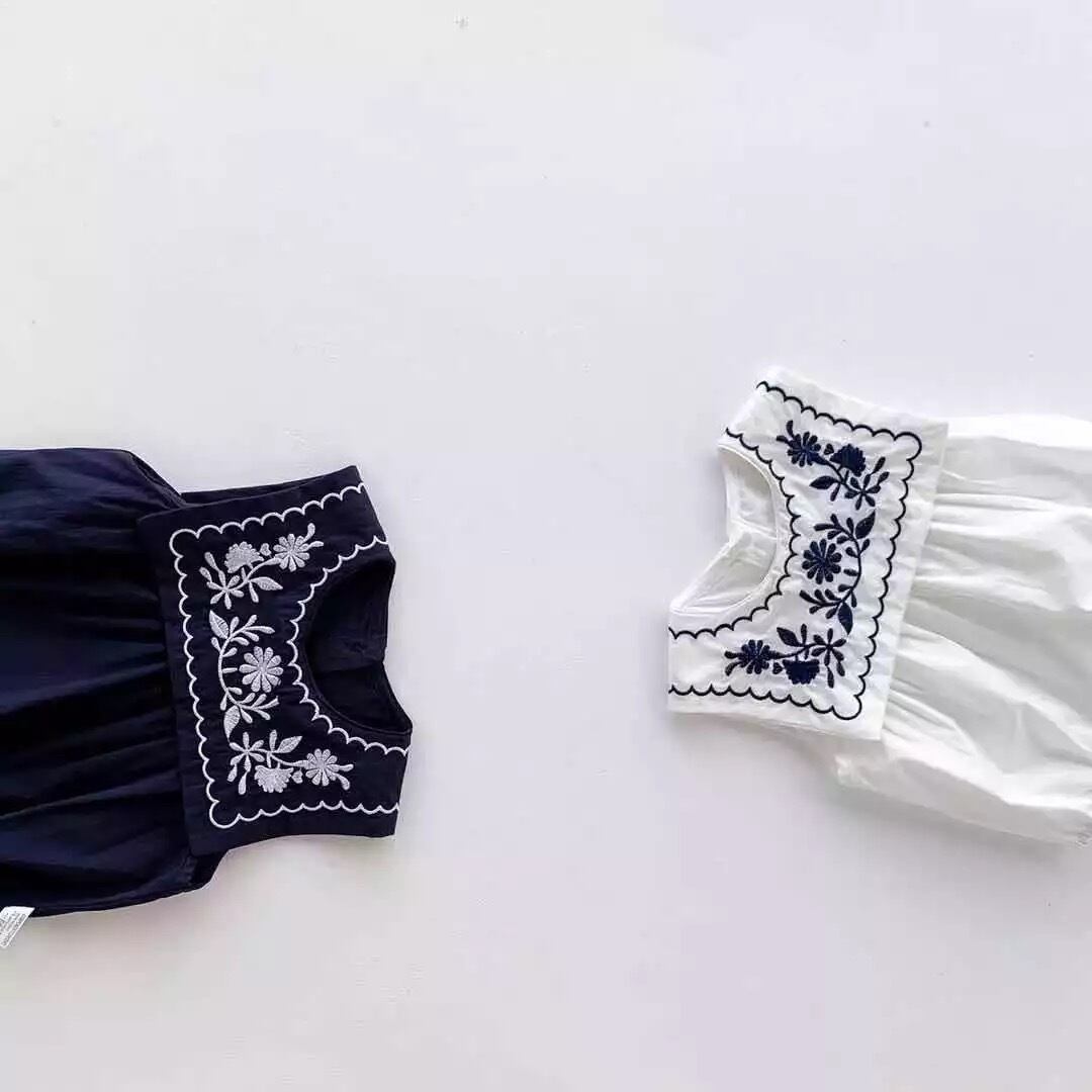 ★送料無料★ 2カラー ホワイト 女の子 刺繍ロンパース 66cm〜90cm 春 夏 韓国子供服