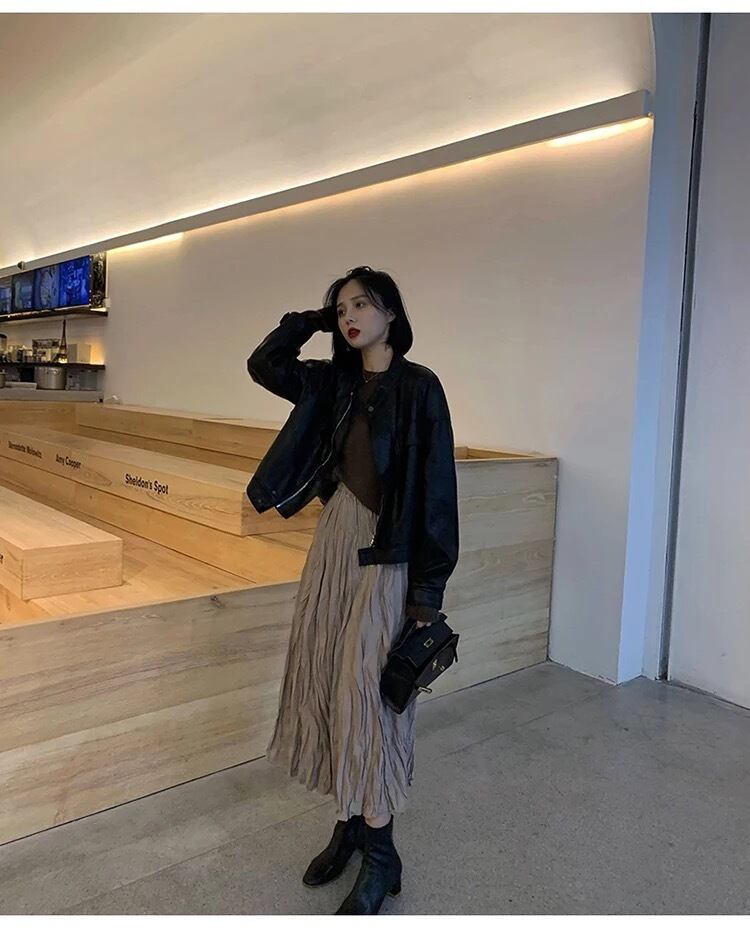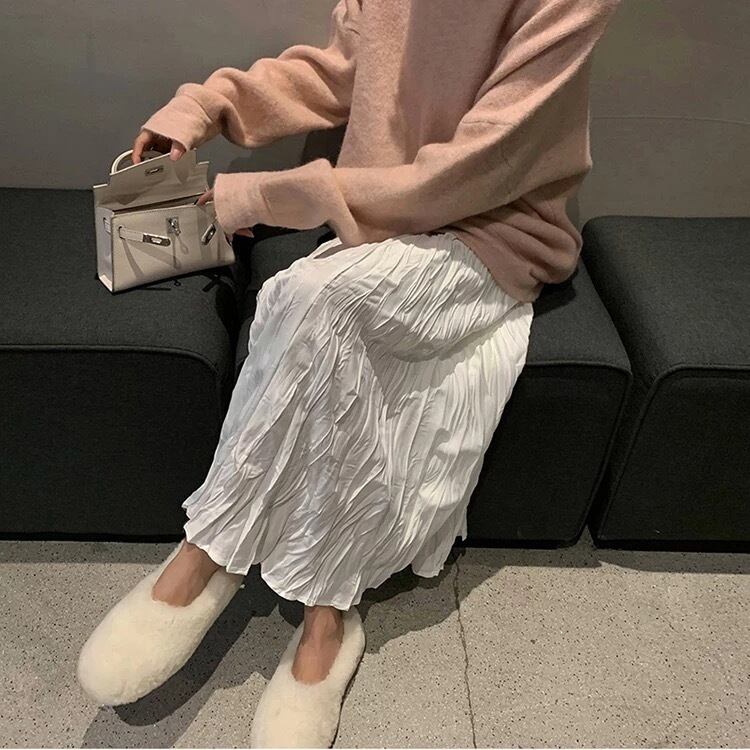 レディース 女性 用 韓国 海外 プチプラ 服 おしゃれ かわいい かっこいい カラー コーデ きれいめ きれい目 上品 スカート ミモレ ロング 丈 シワ しわ 皺