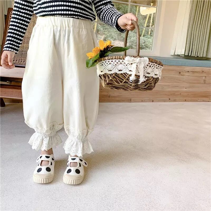★送料無料★ 女の子 裾レースイージーパンツ 80cm〜130cm 春 夏 韓国子供服