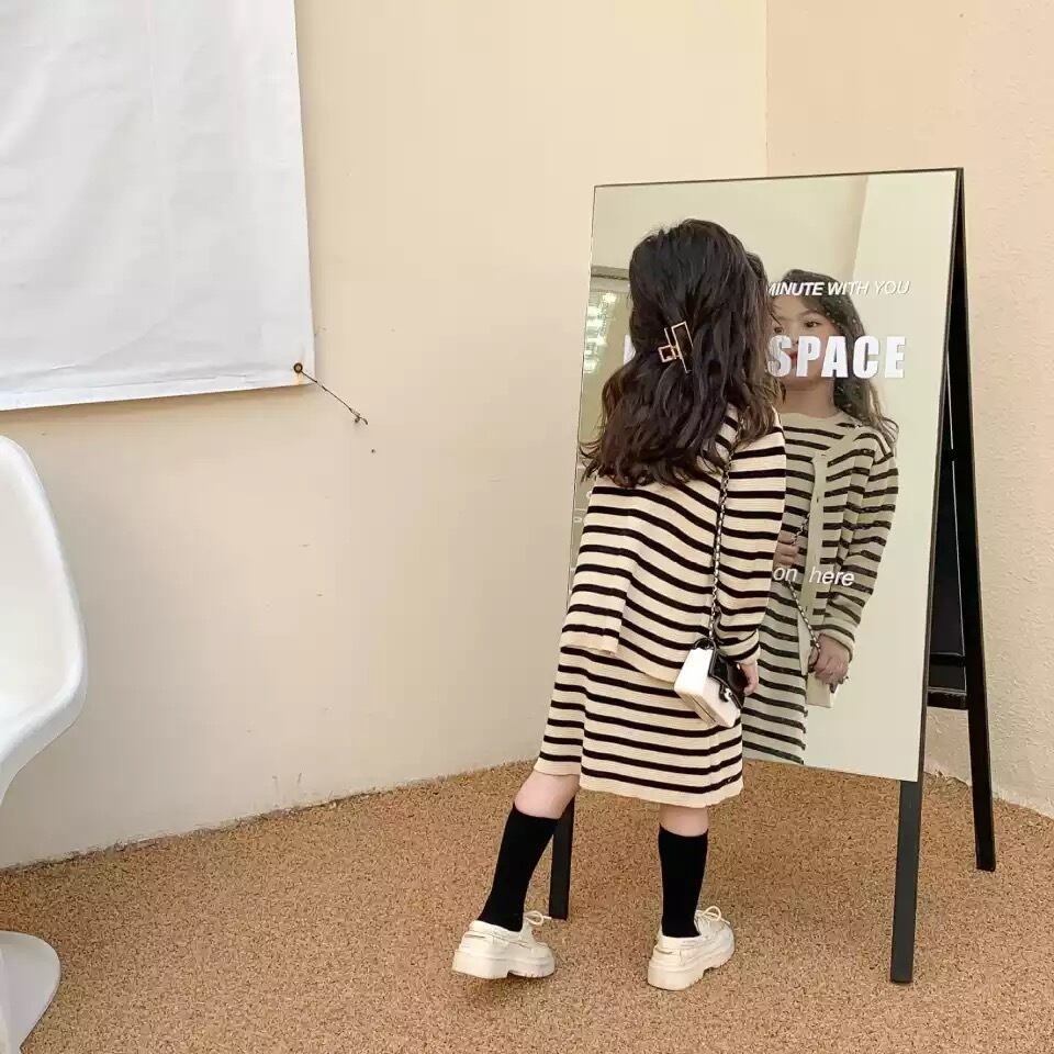 ★送料無料★ 女の子 カーディガン&ボーダーワンピースセット 90cm〜140cm 秋 冬 韓国子供服