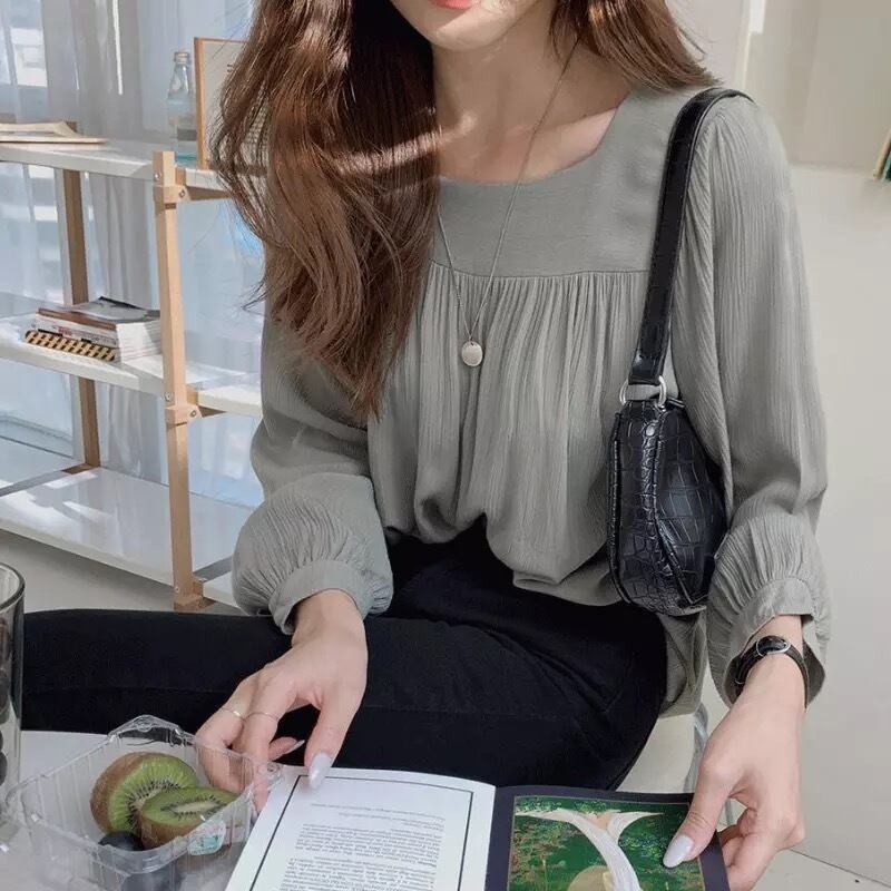 ★送料無料★ 2カラー レディース 長袖 ギャザーブラウス 春 夏 韓国