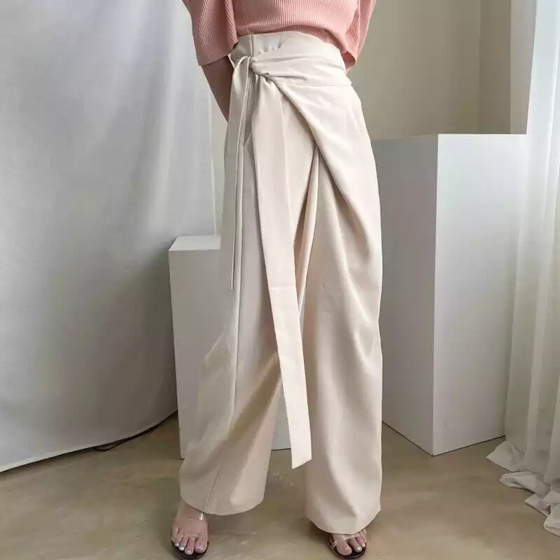 レディース 女性 用 韓国 海外 プチプラ 服 おしゃれ かわいい かっこいい カラー コーデ きれいめ きれい目 上品 パンツ ズボン ウエスト マーク リボン ベルト ワイド ルーズ