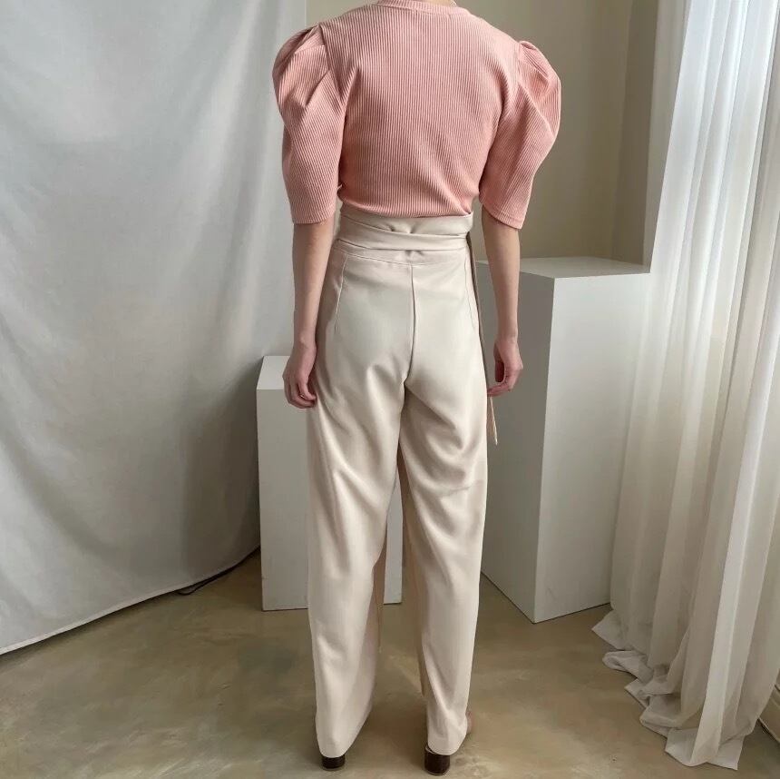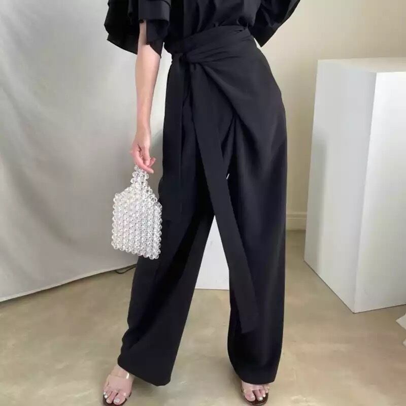 レディース 女性 用 韓国 海外 プチプラ 服 おしゃれ かわいい かっこいい カラー コーデ きれいめ きれい目 上品 パンツ ズボン ウエスト マーク リボン ベルト ワイド ルーズ