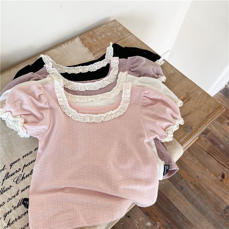★送料無料★ 4カラー 女の子 レース半袖カットソー 80cm~130cm 春 夏 韓国子供服