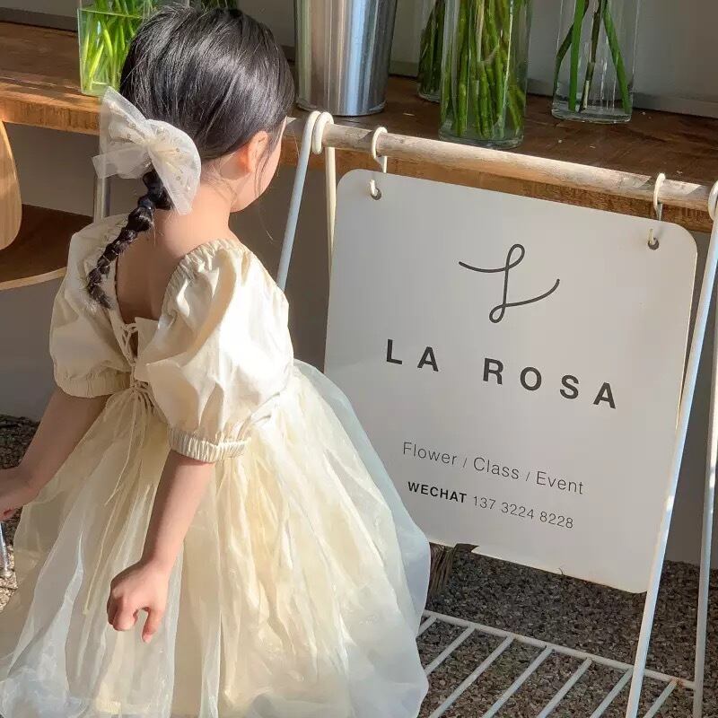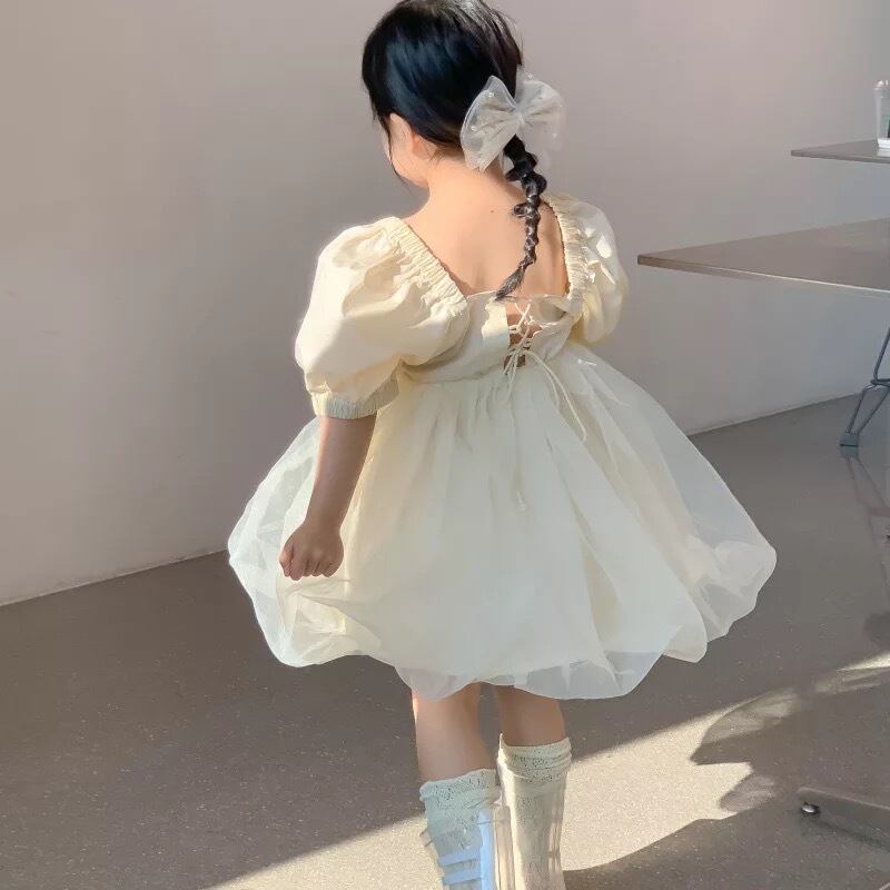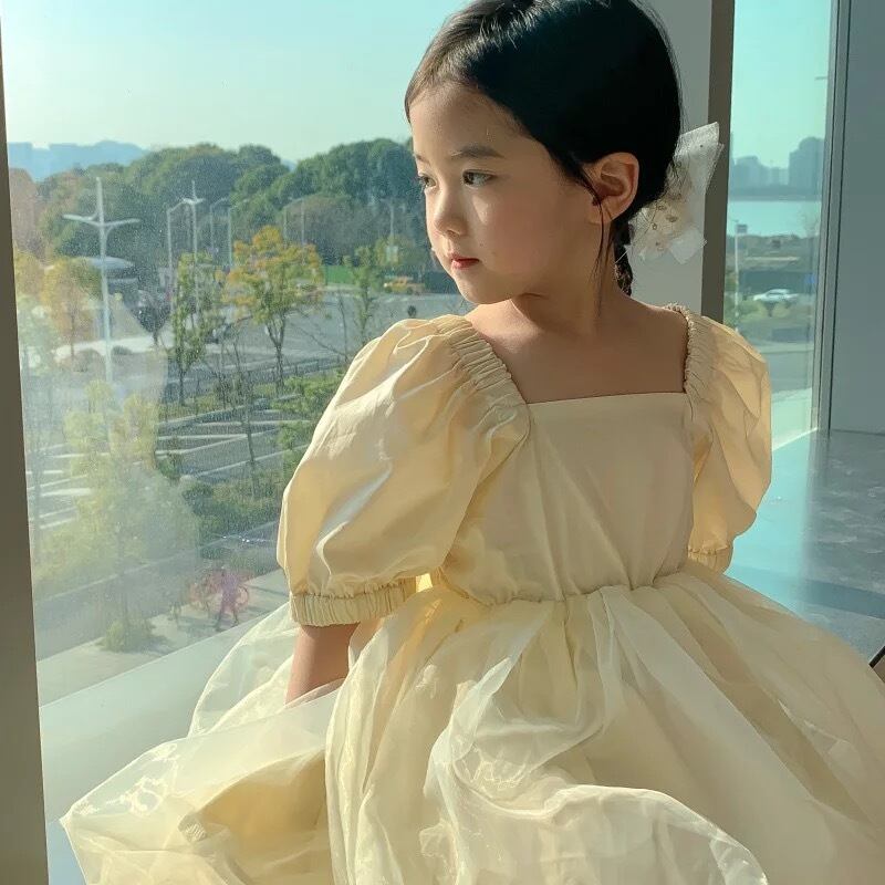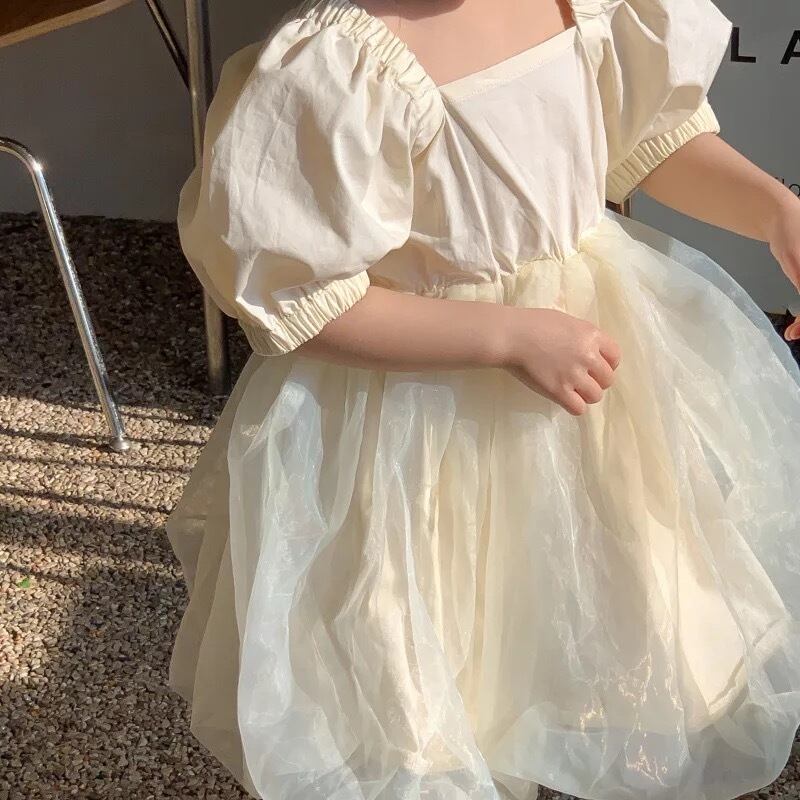 ★送料無料★ 女の子 半袖パフスリーブドレス 90cm~130cm 春 夏 韓国子供服