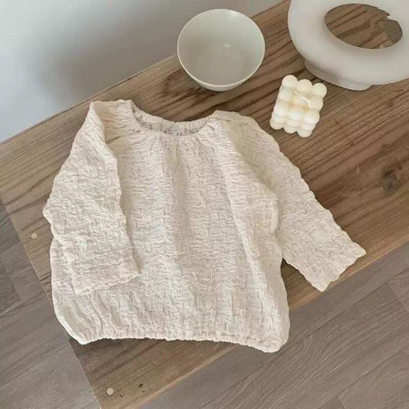 ★送料無料★ 女の子 男の子 シワ感ロングTシャツ 80cm~120cm 秋 冬 韓国子供服