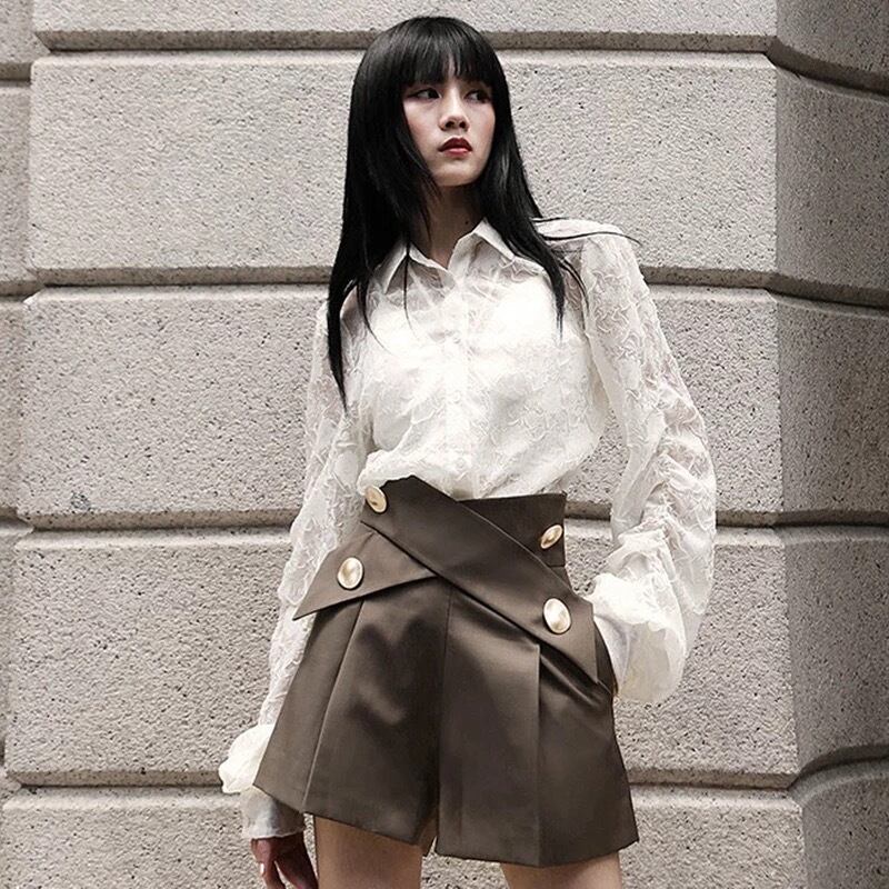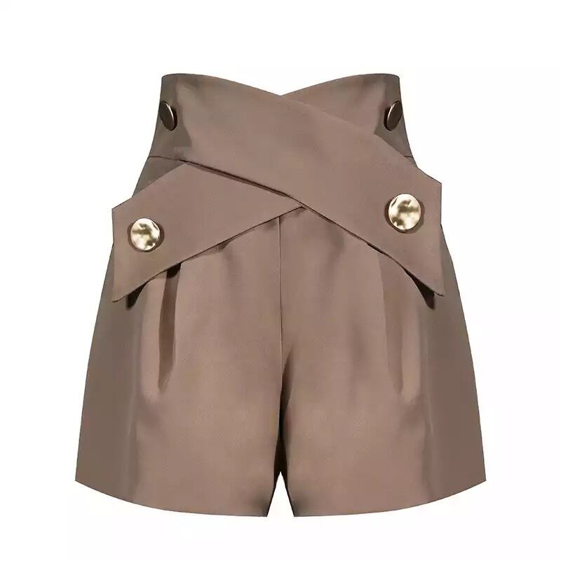レディース 女性 用 韓国 海外 プチプラ 服 おしゃれ かわいい かっこいい カラー コーデ 綺麗め きれいめ きれい目 大人 かわいい 可愛い 上品 ホット パンツ ハイウエスト ショート ハーフ クロス デザイン ボタン ブラック 黒 カーキ
