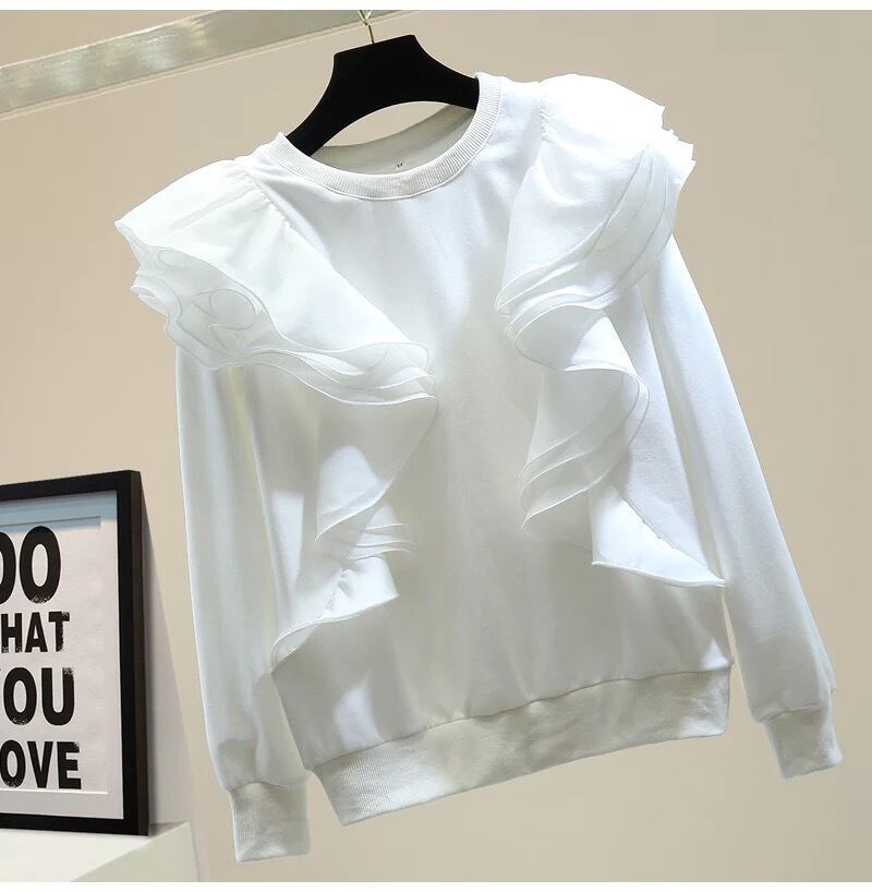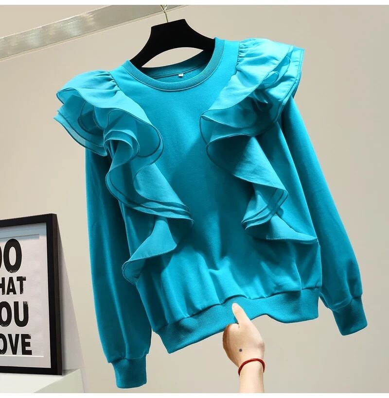 ★送料無料★ 4カラー レディース フリルトレーナー 韓国 M〜3XL