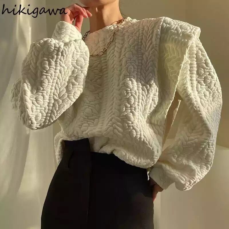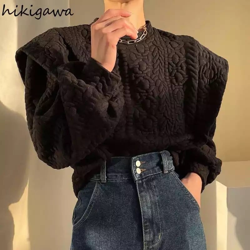 ★送料無料★ 2カラー レディース 凹凸トレーナー 韓国 M〜3XL