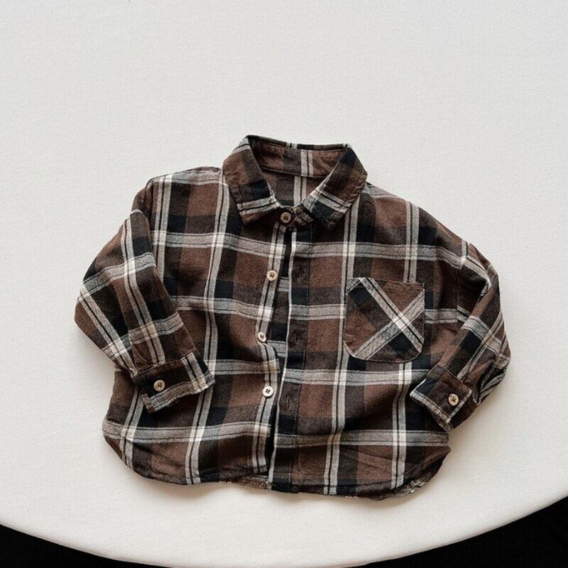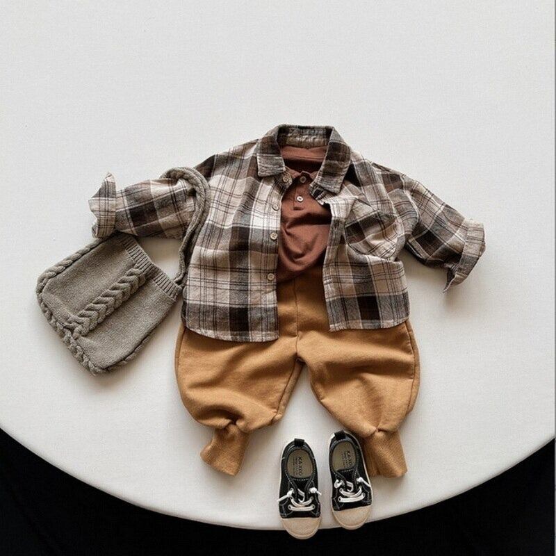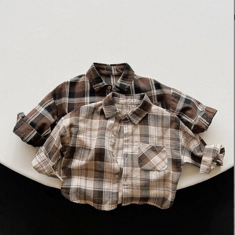 ★送料無料★ 2カラー 女の子 男の子 チェックシャツ 80cm~130cm 秋 冬 韓国子供服