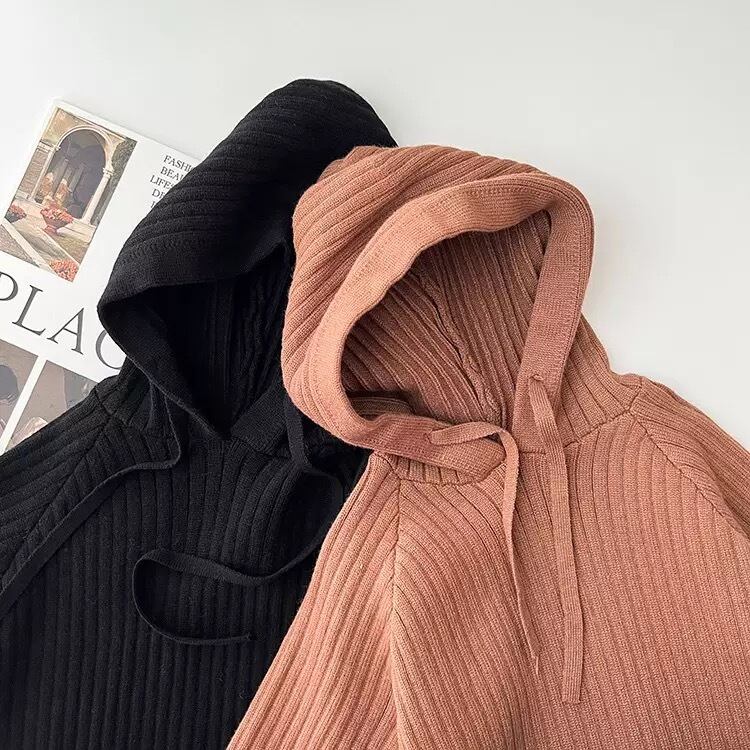 シンプルかわいいフード付きニットワンピ。