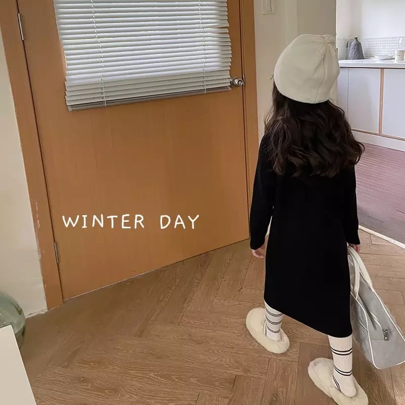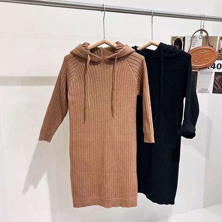 ★送料無料★ 2カラー 女の子 フード付きニットワンピース 90cm~150cm 韓国子供服