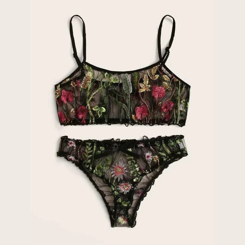 透け感がかわいい花柄刺繍のブラショーツセット★