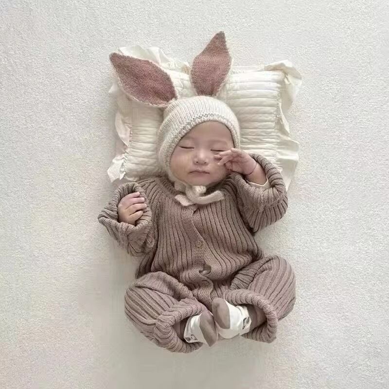 アースカラーが可愛いニットロンパース♪